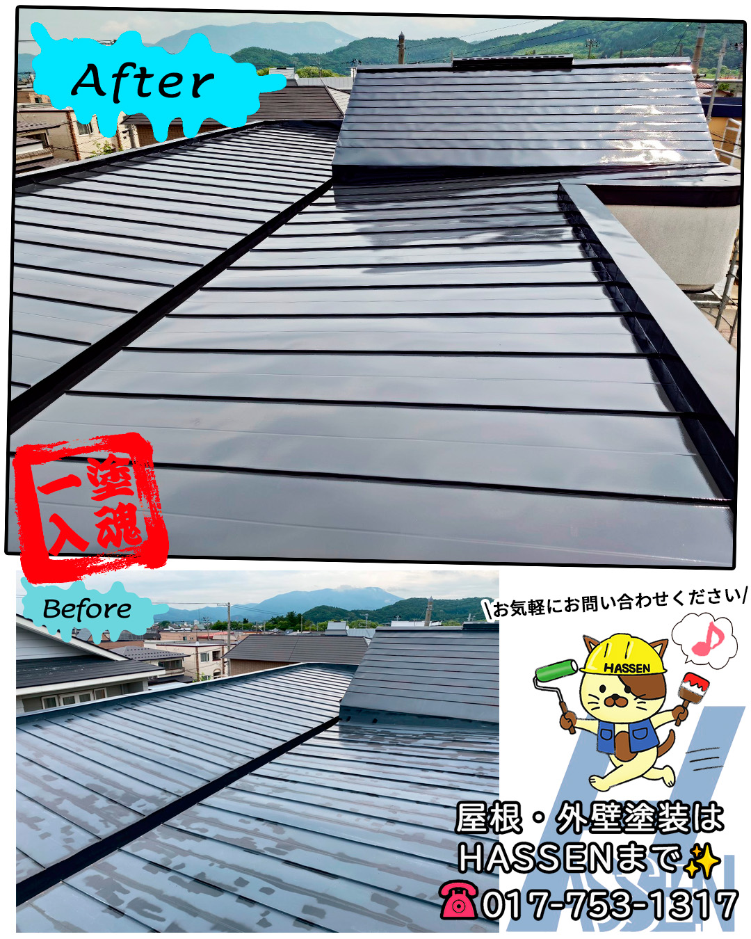 新着情報 NEWS 屋根のメンテナンス 2025.07.14 屋根の表面温度、真夏はなんと60℃以上になることも! 塗膜が劣化すると熱や紫外線をまともに受け、屋根材が傷むだけでなく室内の温度も上がります(-_-;) 塗装で家を守り、夏も快適に過ごしましょう✨ 無料点検実施中ですので、お気軽にお問い合わせください♪ 一塗入魂!!! TEL:017-753-1317 一覧に戻る